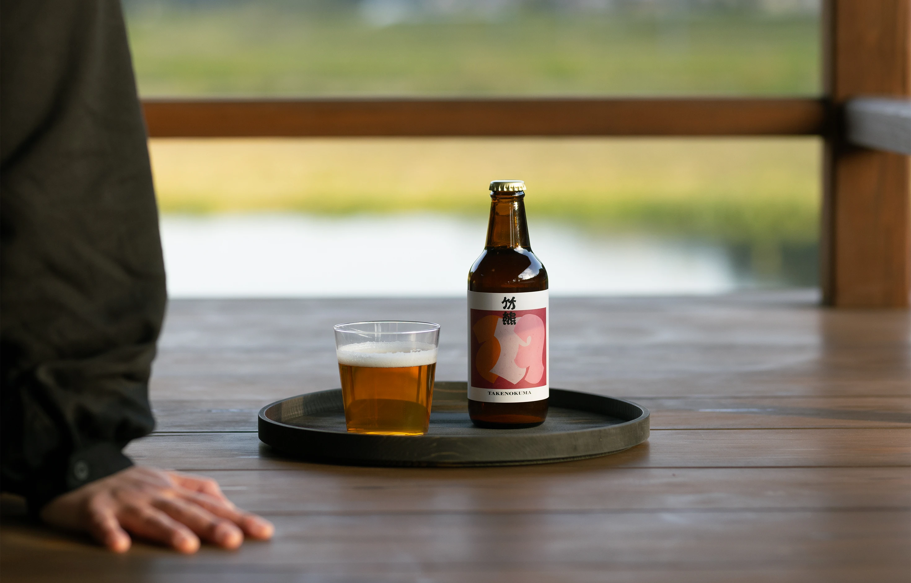 喫茶竹の熊で開発したクラフトビールのラベルを制作した。サワーセゾンとペールエールで2種展開されるこのビールには小国杉の葉と樹皮が香り付けに使われ、製材所を営むクライアントが手掛けるこの店でしか味わえないものとなっている。ラベルのデザインにあたってはビールを製造する醸造所でその工程を視察し、レシピの監修者とイメージについて共有しながらそれぞれの味わいをかたちと色彩で表現した。この絵の原画は店内の意匠にもなっている。