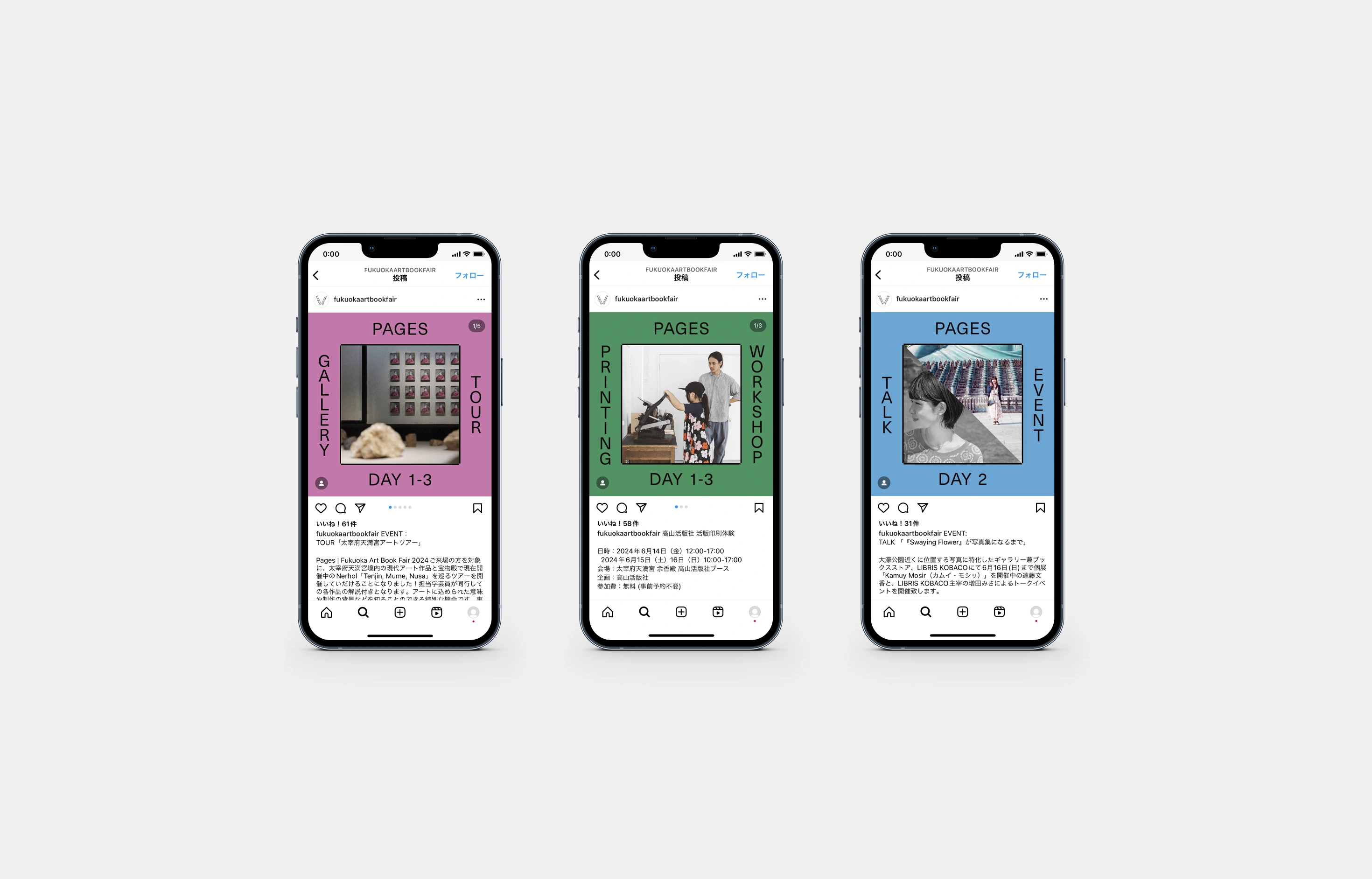 PAGES Fukuoka Art Book Fair 2024 SNS 「PAGES|Fukuoka Art Book Fair」のSNS展開用ヴィジュアルをデザインした。 「PAGES|Fukuoka Art Book Fair」のSNS展開用ヴィジュアルをデザインした。 制作物一覧 V.I. 印刷物 プロダクト サイン