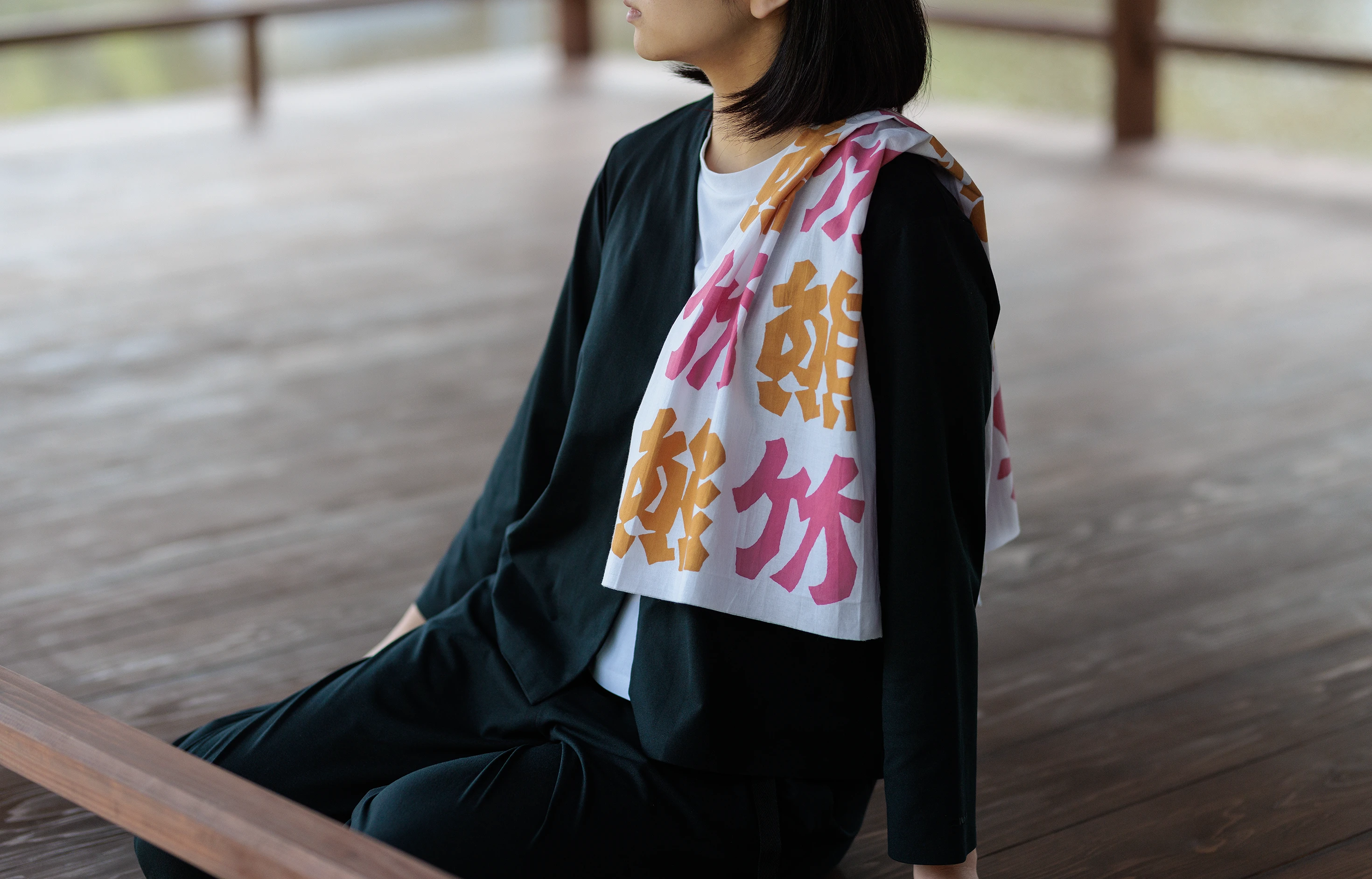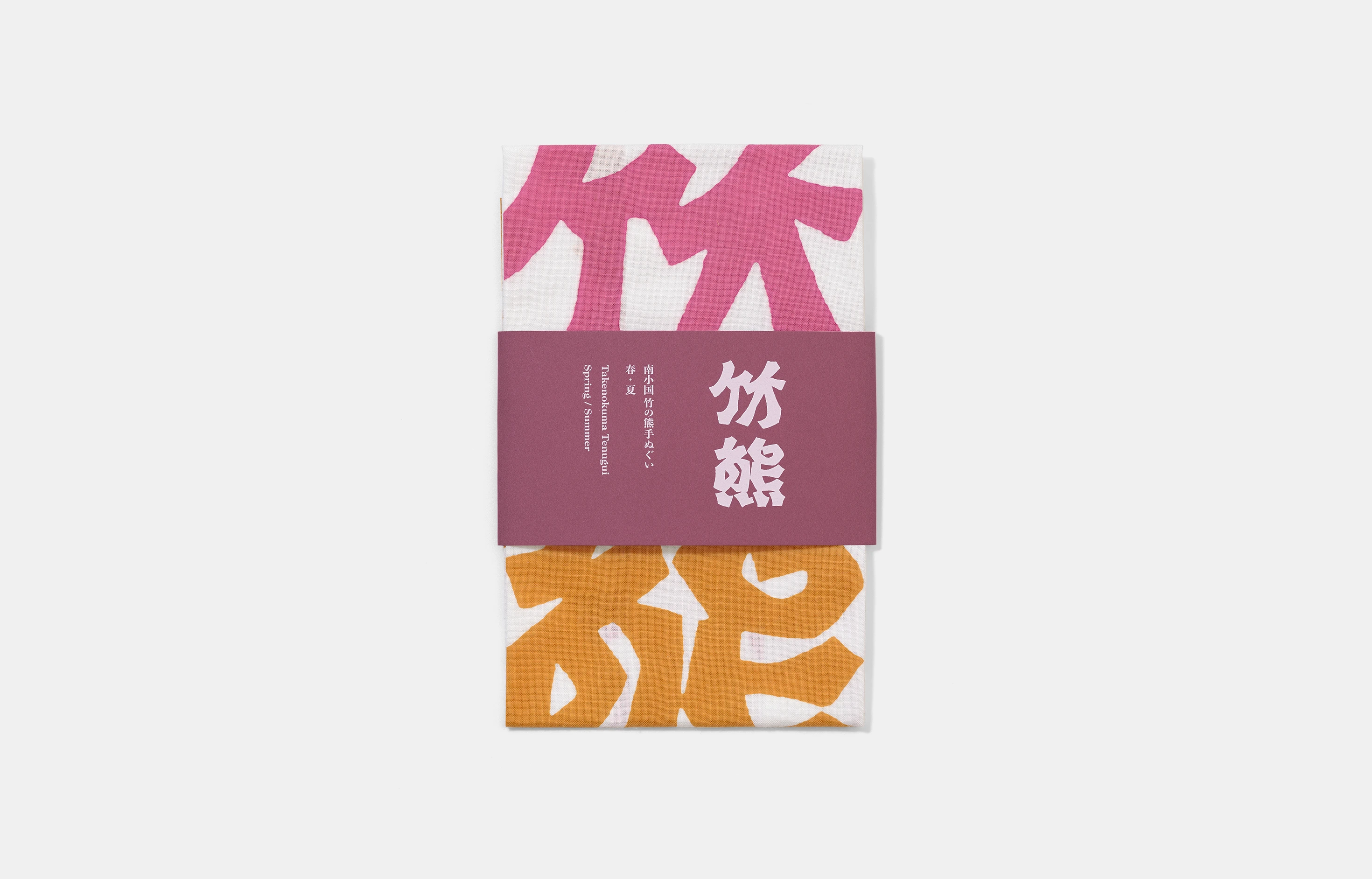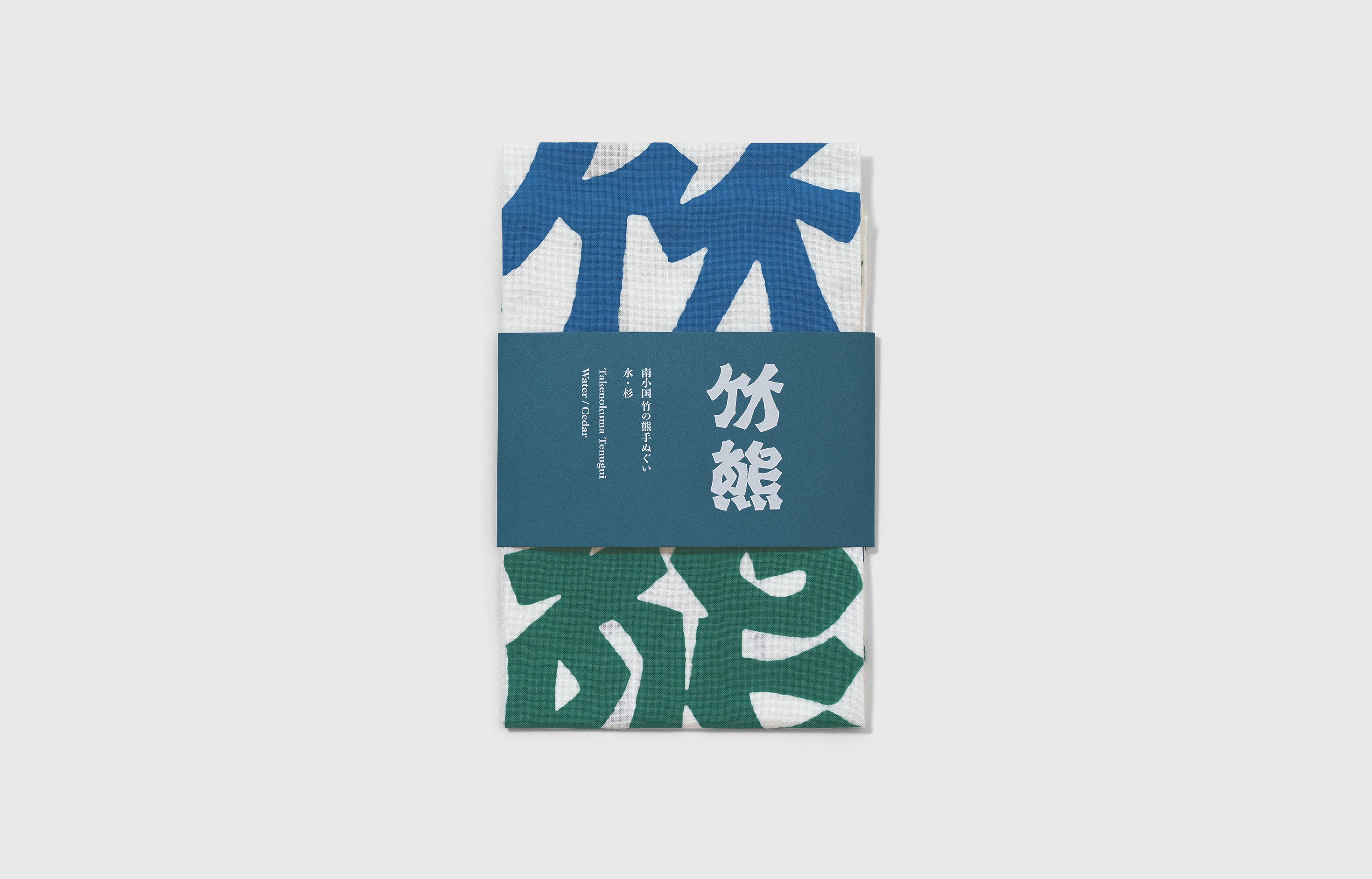 南小国町にはいくつもの温泉地があり、国内外から毎年多くの観光客が湯浴みのためにこの地を訪れる。喫茶竹の熊にはこうした温泉客が立ち寄ることから、南小国での旅の記憶を持ち帰る土産品として手ぬぐいを制作した。この手ぬぐいは職人による注染でつくられ、水源と杉のある南小国町を象徴する定番色、また季節の幸をイメージした限定色の2種類で展開している。