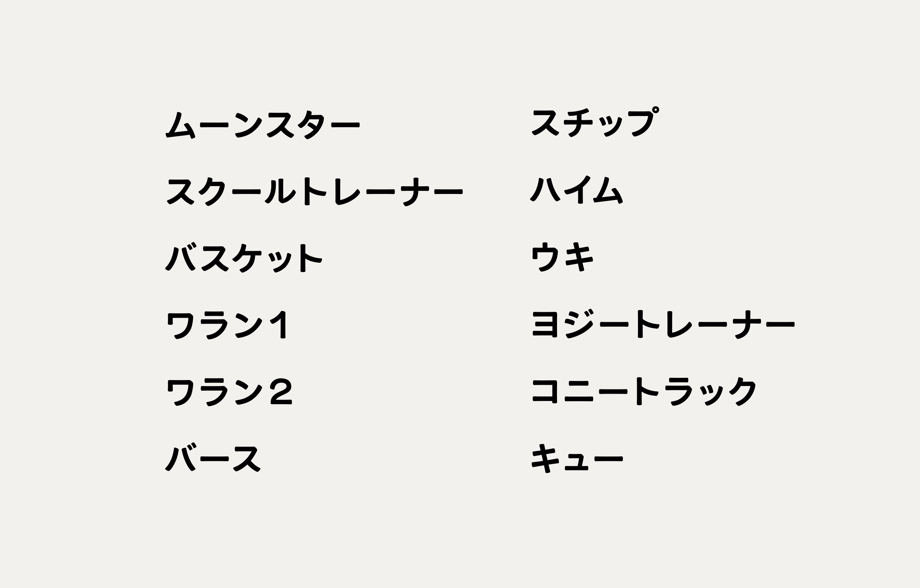 株式会社ムーンスターによる「インユース In Use」シリーズのヴィジュアルアイデンティティとして、ロゴタイプやコピー、製品名の表記に使用する専用書体を設計した。この専用書体は創業150年を迎える同社の歴史や地域性を表現するために、久留米市内のフィールドワークで収集した手描きの看板やサインに書かれた古い文字のかたちを参照している。